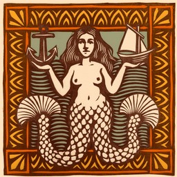 Indeed Leigh Fermor’s book cover for ‘Mani’, illustrated by the artist John Craxton, inspired the cover for ‘Hydra’ which depicts a melusine or two-tailed mermaid.